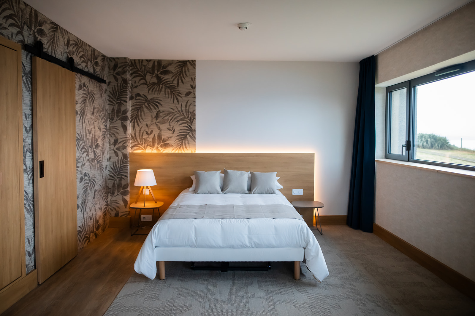 Pour les chambres, notre objectif était d’allier confort des clients et praticité pour le personnel. Nous avons sélectionné une literie haut de gamme intégrant un lève-lit, un détail technique qui facilite grandement l’entretien quotidien.
